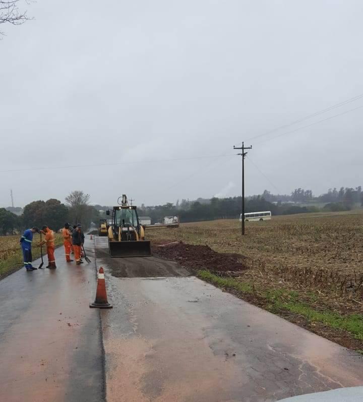 Durante o dia de hoje, apesar do tempo chuvoso, teve continuidade a obra do recape asfáltico para a Base Náutica.