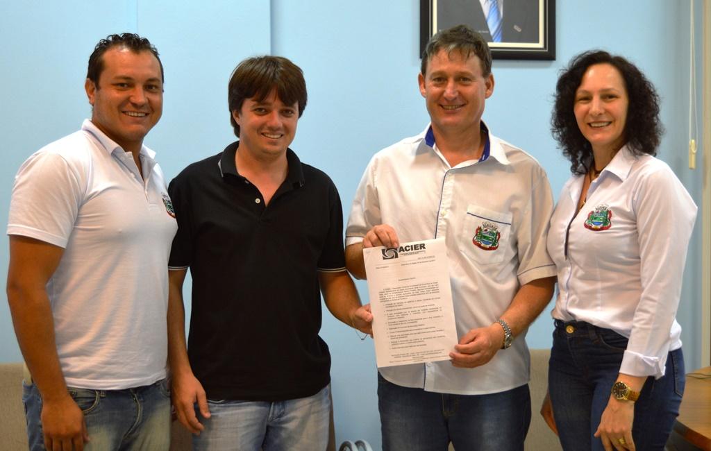 Na manhã de ontem (02), o prefeito Jones Neuri Heiden, juntamente com o secretário de Indústria, Comércio, Turismo e Desenvolvimento Econômico, Adilson de Oliveira (Fofo), reunira-se com o Presidente da Acier, Alexandre Stein, juntamente com a Coordenadora do Núcleo do Comércio, Iris Seganfredo para realizar a entrega de ofício com algumas reivindicações e propostas a serem desenvolvidas em parceria com a Administração Municipal.