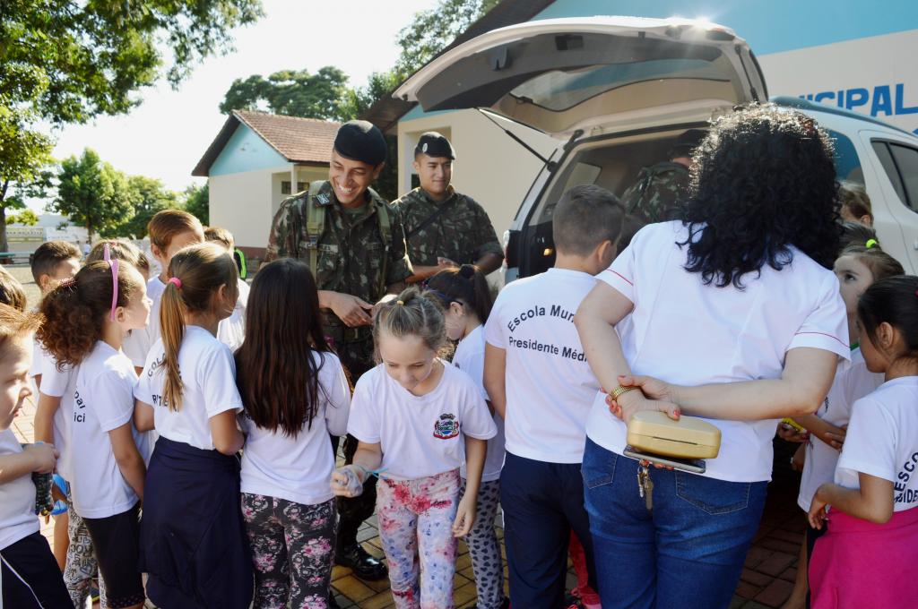 Na manhã de hoje (28), oficiais da 33º Batalhão de Infantaria Mecanizado do Exército em Cascavel, realizaram uma visita para os alunos da Escola Municipal Presidente Médici.