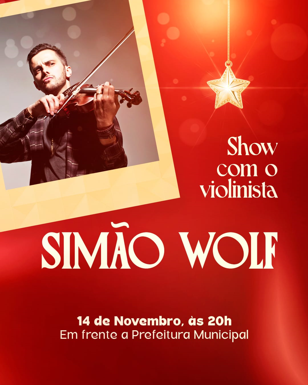 Show com Violinista - SIMÃO WOLF - 14 de Novembro, ás 20h em frente a Prefeitura Municipal