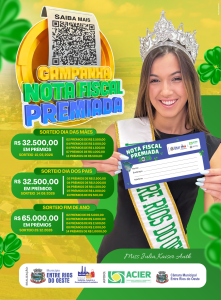 O município de Entre Rios do Oeste inicia a Campanha Nota Fiscal Premiada, que promete incentivar o comércio local e premiar os consumidores. Este ano, a campanha chega com um valor total de R$ 130.000,00 em prêmios, um aumento de R$ 10.000,00 em relação à edição anterior.